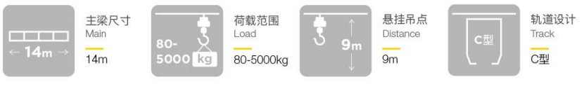 軌道、主梁表面的噴塑層可延長(zhǎng)產(chǎn)品的使用壽命,降低維護(hù)成本。 此外,軌道吊掛點(diǎn)距離長(zhǎng)達(dá)9m,可最大程度地減少鋼結(jié)構(gòu)的用量,從而降低起重機(jī)的整體成本。同時(shí)起重機(jī)采用模塊式設(shè)計(jì),使您能在企業(yè)需求改變時(shí)有針對(duì)性地調(diào)整起重機(jī)系統(tǒng),因而投資該產(chǎn)品對(duì)您而言將是明智之舉。